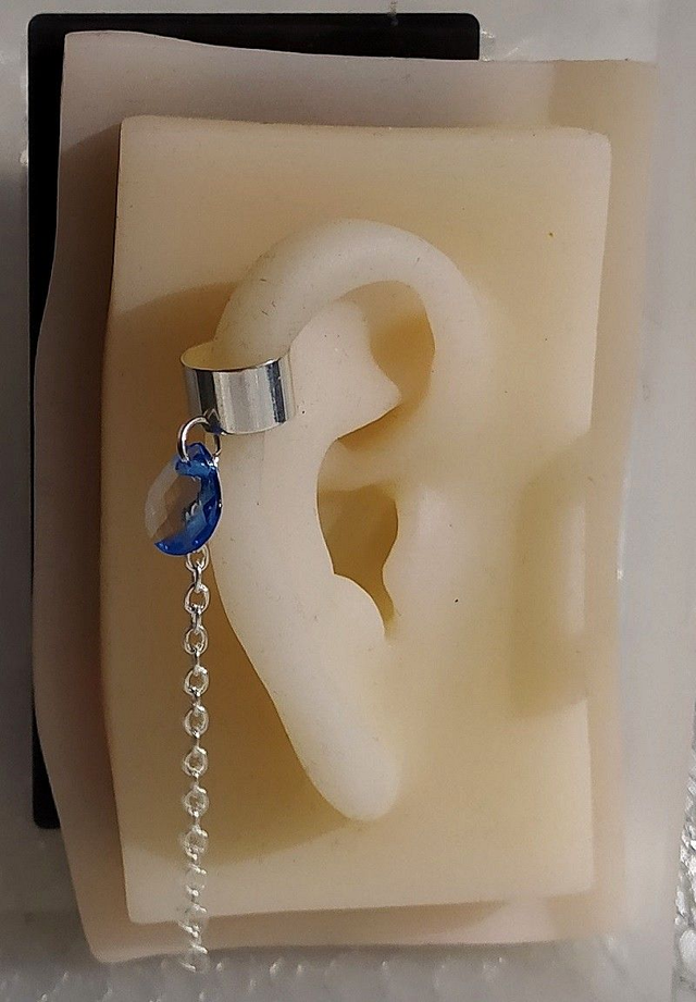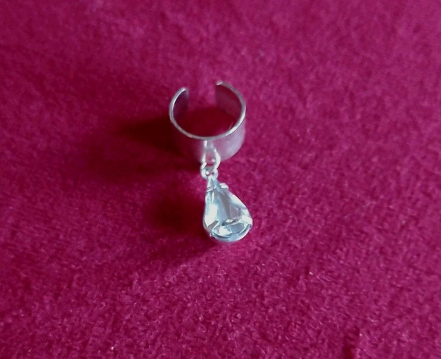 Bague d'oreille en métal argenté, pendentif breloque. Le bijou est réglable. La bague d'oreille peut se porter sur une oreille non percée. Plusieurs modèles disponibles :