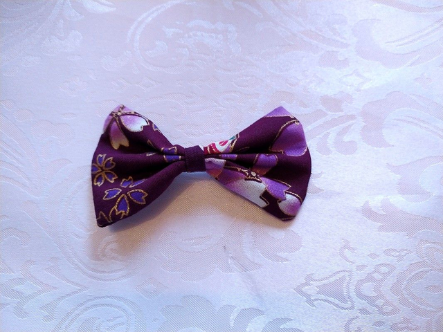 -Fleur de cerisier or sur fond violet (2 modèles) Noeud: 5 x 10cm Support: 0.7 x 3.5cm