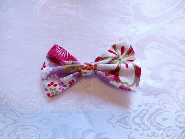 Jolie barrette noeud en coton à motifs japonais, support métal argenté. Plusieurs modèles disponibles: