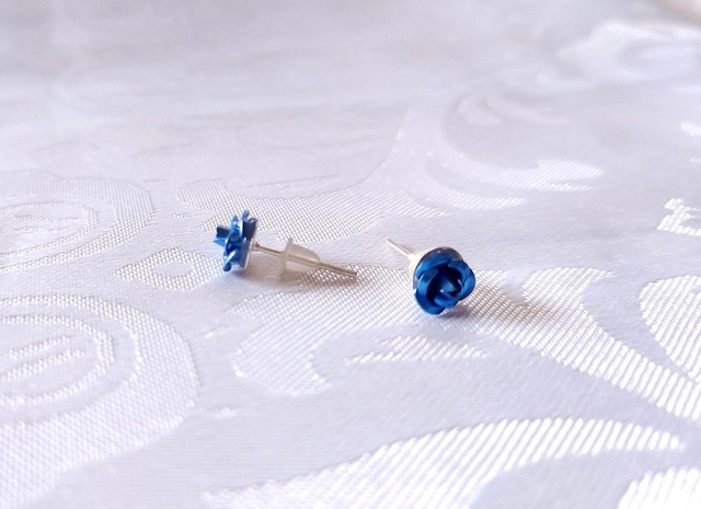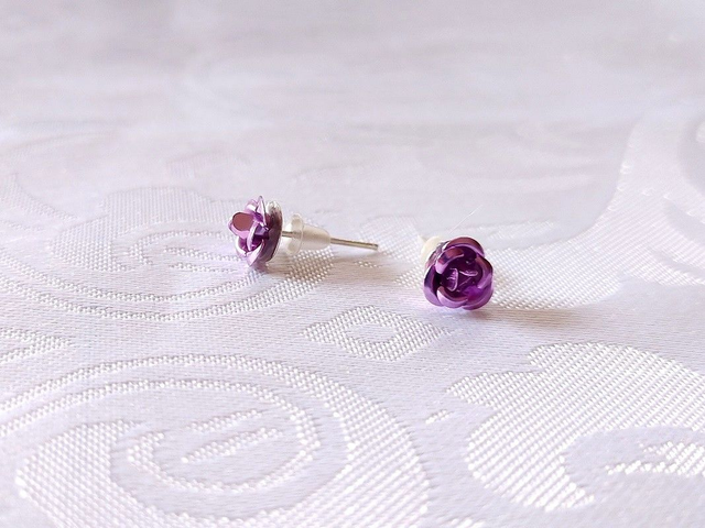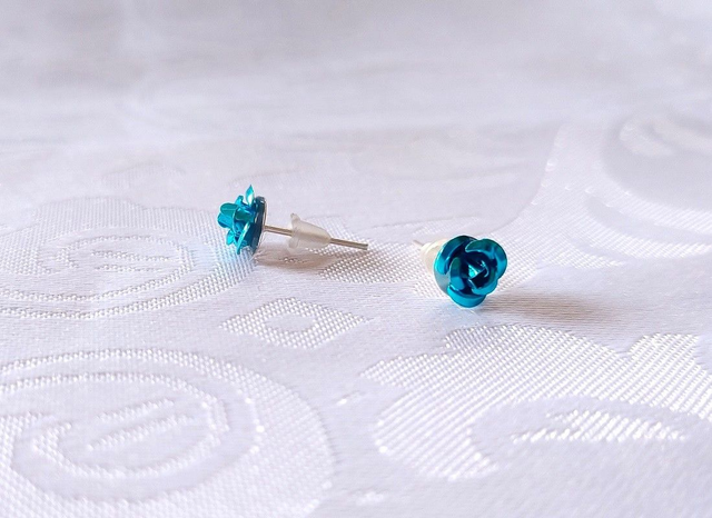Jolis bijoux d'oreilles discret. Le support des clous sont en métal argenté. Les roses sont en aluminium.