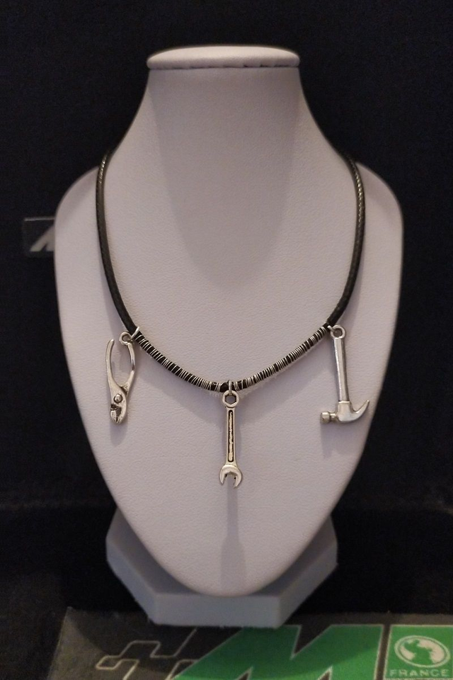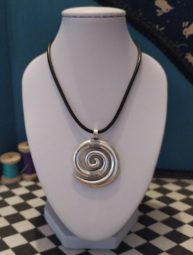 Collier mi-long pendentif de couleur argenté. Le support du bijou est un cordon simple ou tressé, fermé par un fermoir mousqueton. Le bijou est réglable. Plusieurs modèles disponibles: