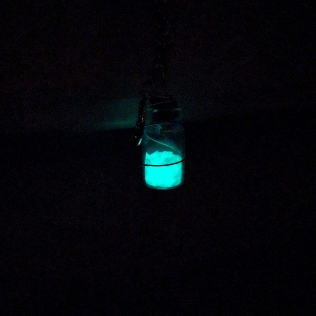 Collier petite fiole pendentif fantaisie brillant dans le noir