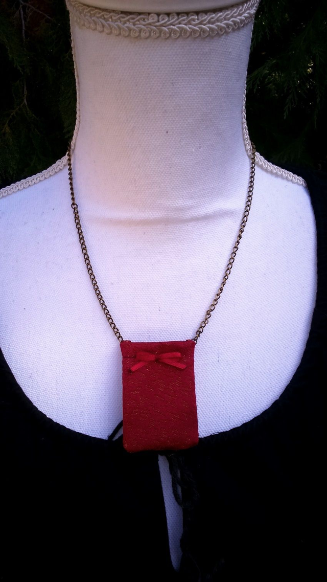 Collier poche en tissu. La poche se ferme par un bouton pression. Plusieurs modèles: