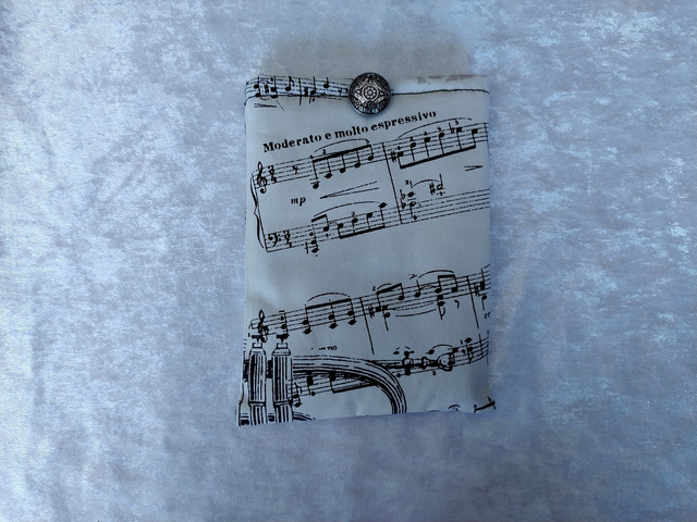 -Coton enduit à motif de musique noir sur fond beige, doublure coton noir, bouton rond argenté