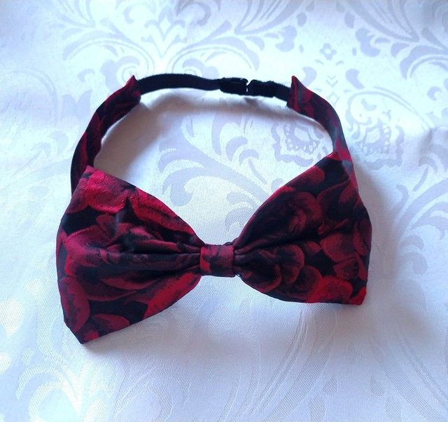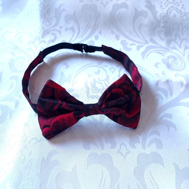 -Roses rouges sur fond noir jacquard gaufré (100% Polyester) petit noeud.