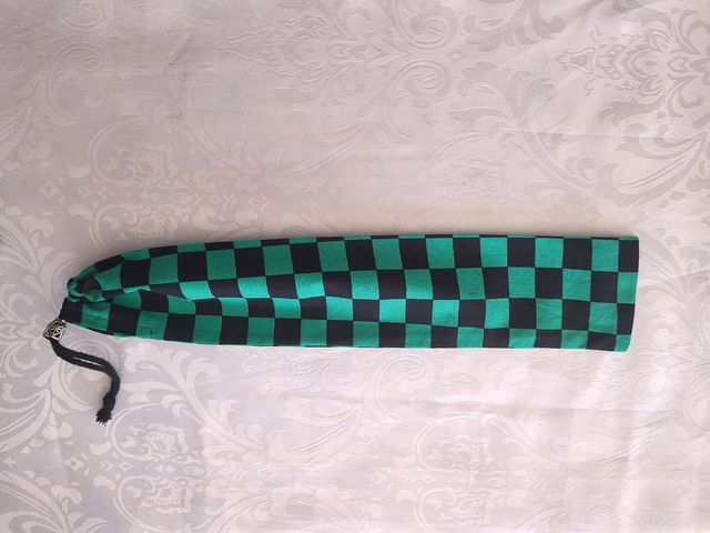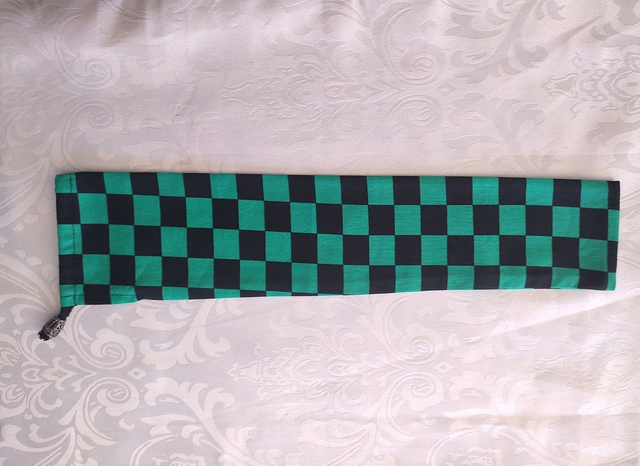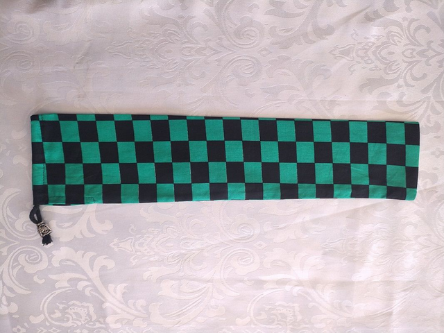 -Popeline de coton damiers verts et noires, cordelette noire, stop cordon argenté.