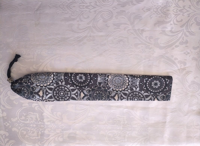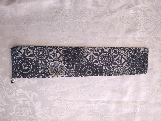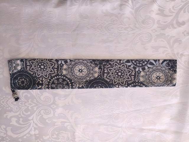 -Mélange viscose/coton mandala tons bleus/gris, cordelette noire, stop cordon argenté.