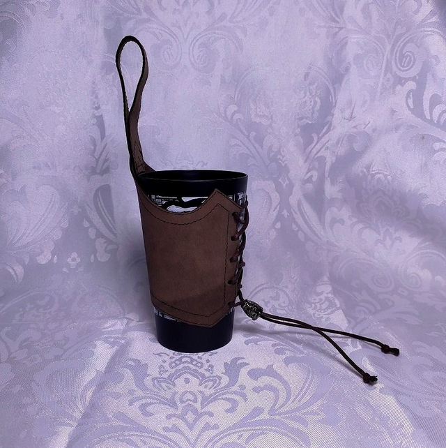 Porte gobelet cuir et laçage cordon
