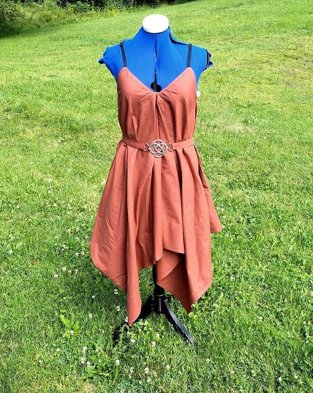Robe asymétrique en tissu, bretelles et ceinture réglables. Plusieurs modèles disponibles: