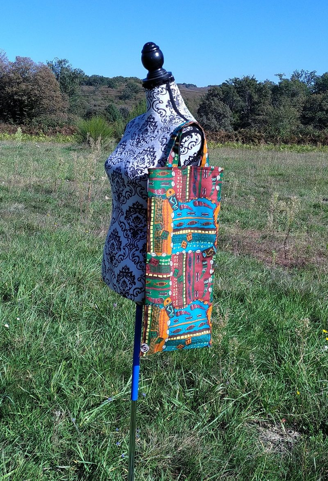 -Sac coton motifs Cameroun bleu, marron, orange et vert, doublure, doublure coton blanc (certifié Oeko-tex).