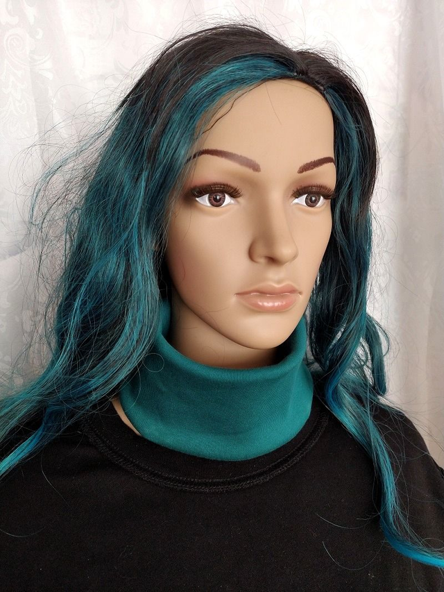 -Turquoise foncé: 8.5cm de haut x tour de cou 44cm au min pouvant s'étirer à 50cm - 2 pièces disponibles.