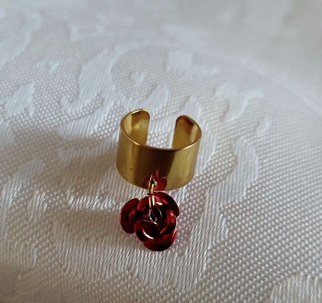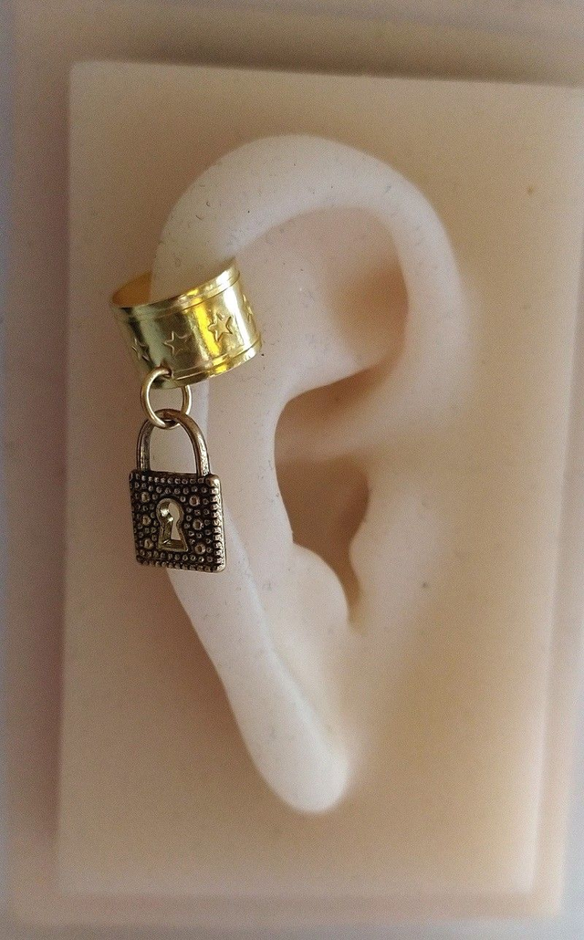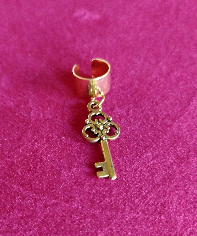 Bague d'oreille en métal doré, pendentif breloque. Le bijou est réglable. La bague d'oreille peut se porter sur une oreille non percée. Plusieurs modèles disponibles :