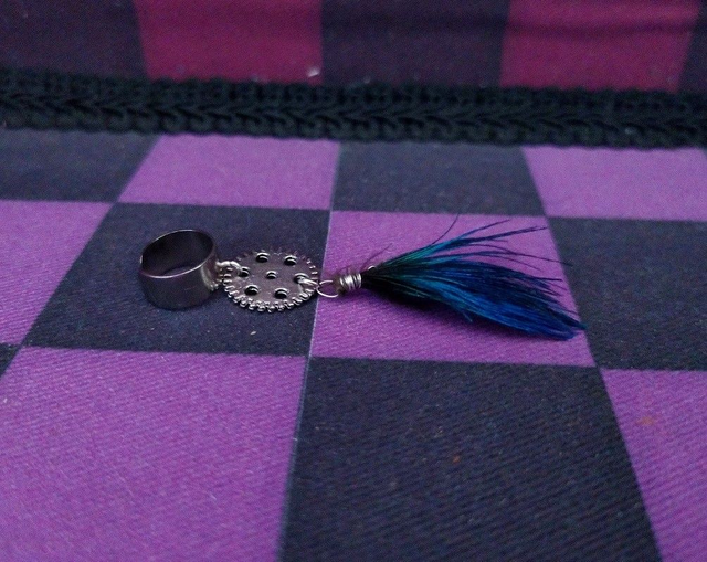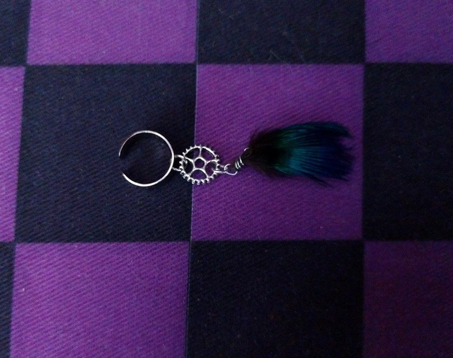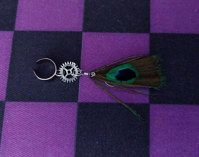Bague d'oreille plume de paon et breloque argentée (plusieurs modèles disponibles)