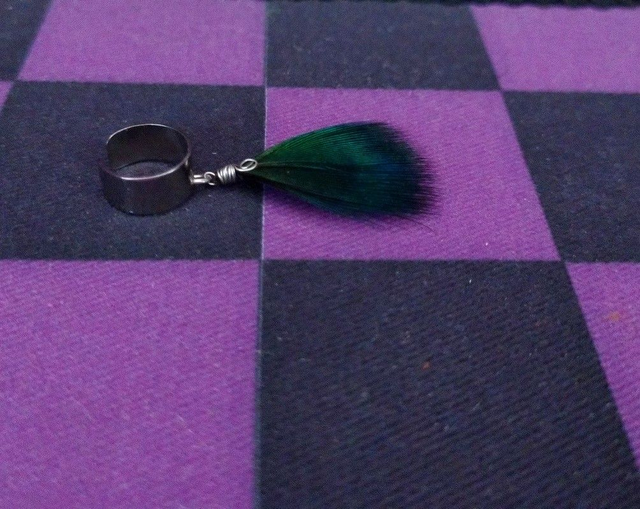 Bague d'oreille réglable en laiton, décorée d'une plume de paon. Plusieurs modèles disponibles :