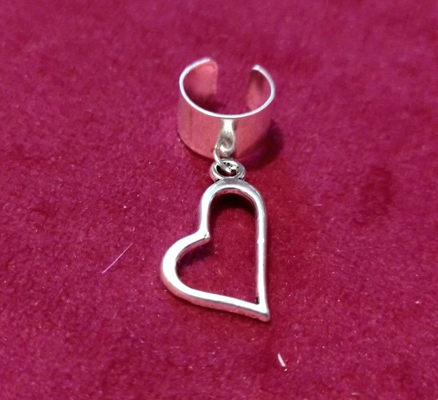 Jolie bague d'oreille support simple en métal, pendentif coeur fin. Plusieurs coloris disponibles: