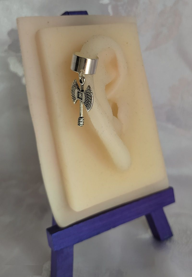 Bague d'oreille en métal argenté, pendentif breloque. Le bijou est réglable. La bague d'oreille peut se porter sur une oreille non percée.Plusieurs modèles disponibles :